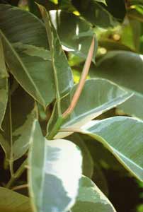 ใบด่างเหลืองและสีครีม ส่วนยอดอ่อนจะมีสีแดงสด