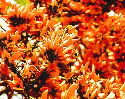 ยาวประมาณ 4 - 8 นิ้ว อกดอกเป็นช่อคล้ายกับดอกทองหลาง ดอกมีขนาดใหญ่สีแดงหรือสีเหลือง