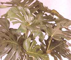 ใบคล้ายกับรอยฉีก ใบมีสีเขียวเข้ม เป็นมันแวววาว ถ้าเรานำเข้ามาปลูกภายในห้อง